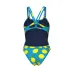 Яскраві та грайливі принти Juicy Fruits відображають нашу любов до сміливого стилю й легкої іронії. Жіночий купальник Lemons — це цільна модель, виготовлена з найбільш стійкої до хлору тканини, з відкритою спинкою на тонких бретелях і високою горловиною. Створений для тривалих тренувань у басейні, він ідеально поєднується з однотонною шапочкою в одному з кольорів принту. Купальник виготовлений щонайменше з 50% перероблених волокон, має міцну тканину, стійку до хлору, швидко сохне та забезпечує UV-захист, гарантуючи максимальну свободу рухів.